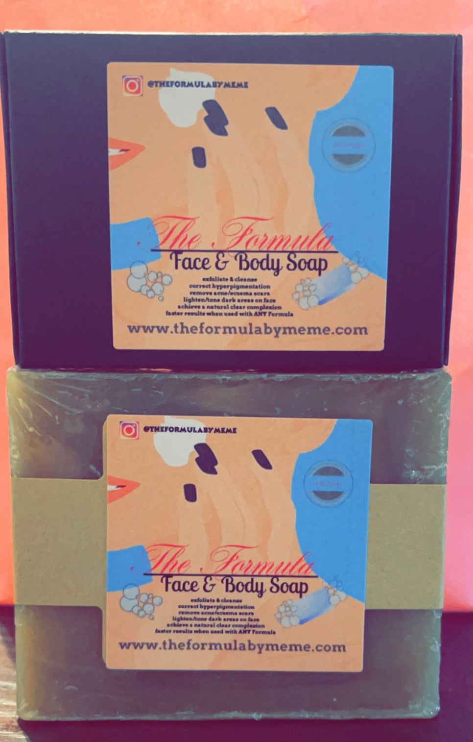 Exfoliate and cleanse impurities to correct hyperpigmentation and remove acne/eczema scars. This hand made FACE and BODY soap lightens/tones dark areas on the face, allowing the user to achieve a natural and clear complexion. ***Get faster results when used with ANY Formula Cream or lotion